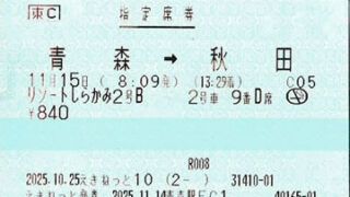 「こまち19号/42号」乗車券・特急券(どこかにビューーン)