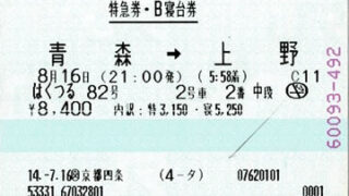 「京都~青森」自由席特急券/急行「あおもり」急行券・B寝台券