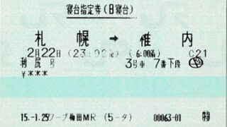 小ネタその2です。上野~青森間を結ぶ寝台特急「はくつる82号」のB寝台券です。「はくつる」は東北新幹線八戸開業まで上野~青森間を東北本線で結ぶ寝台特急で、1964年に20系ブルートレインとして初めて東...