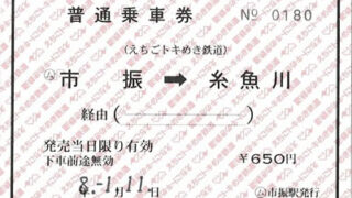 来年3月で廃止される留萌本線深川~石狩沼田間のうち、石狩沼田->北一已の乗車券です。「北一已」は「きたいちやん」と読み、ちょっとした難読駅名ということもあって、今年4月から常備券が発売されるようになっ...