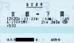 快速「ムーンライト九州」指定席券