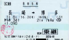 特急「かもめ34号」特急券
