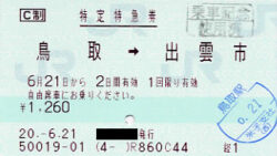 「益田→米子」自由席特急券?(スーパーくにびき)
