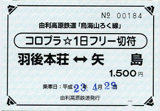 コロプラ☆1日フリーきっぷ(由利高原鉄道)