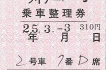 「セントラルライナー16号」乗車整理券(常備軟券)