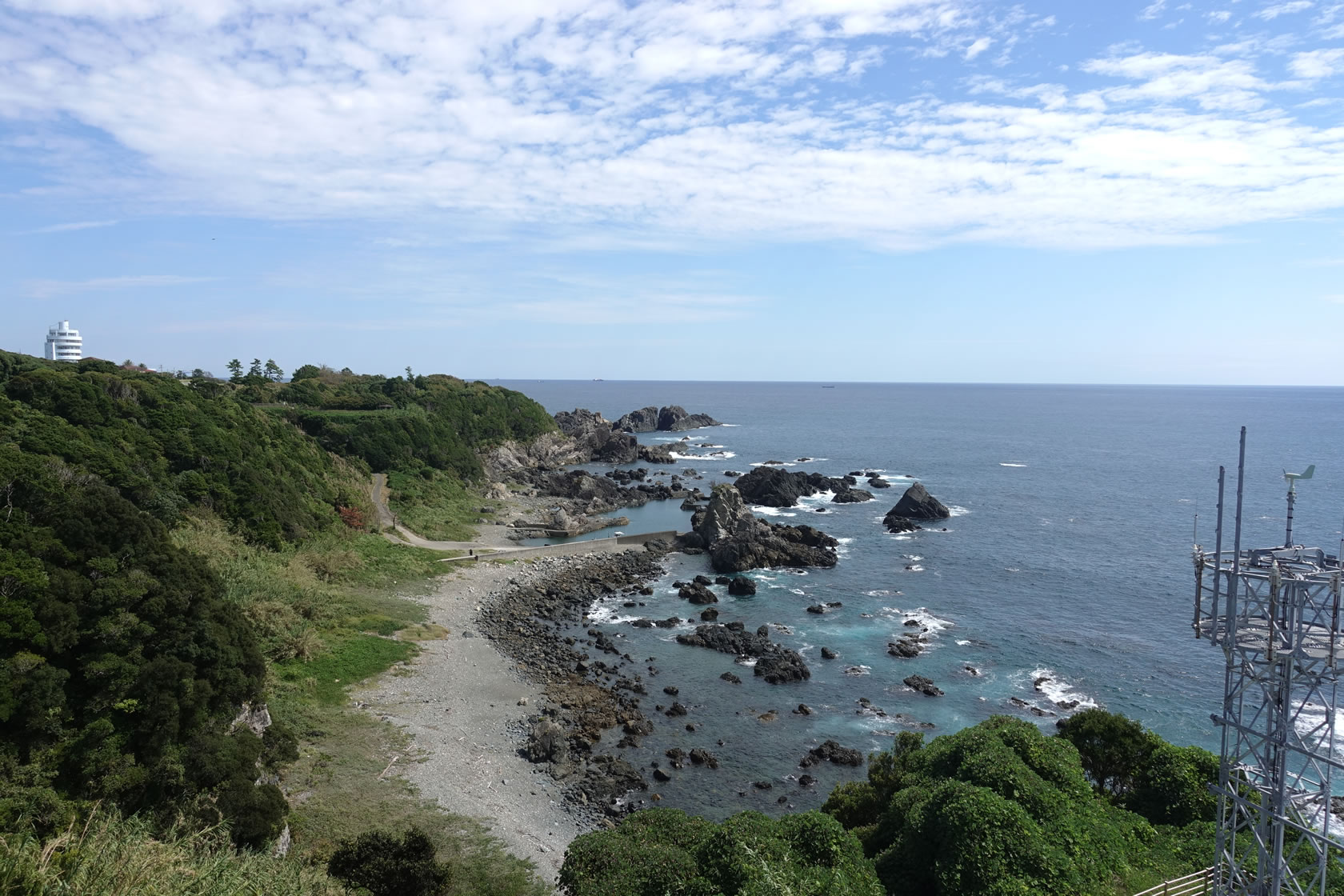 潮岬灯台から東方面の眺め。左奥に見える建物は潮岬観光タワー。