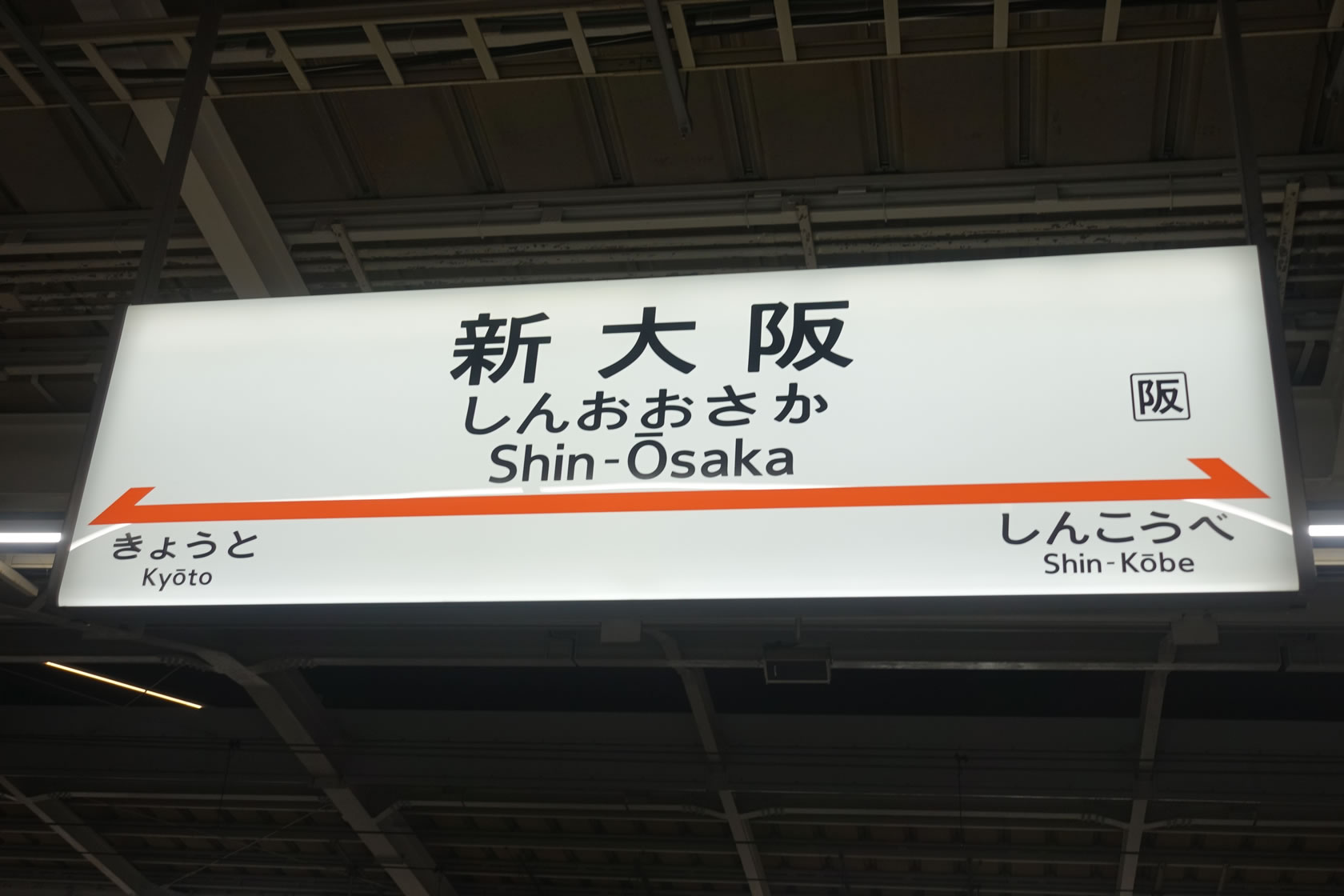 新大阪駅ですが、駅名標の矢印が両方向いているのが特徴。これは新大阪駅では基本的にどのホームからでも東京、博多方面に発車することができるためと思われます。もっともだいたいホームは決まっていて、例えば8両編成のこだま、さくらなどはだいたい20番乗り場になることが多いです。