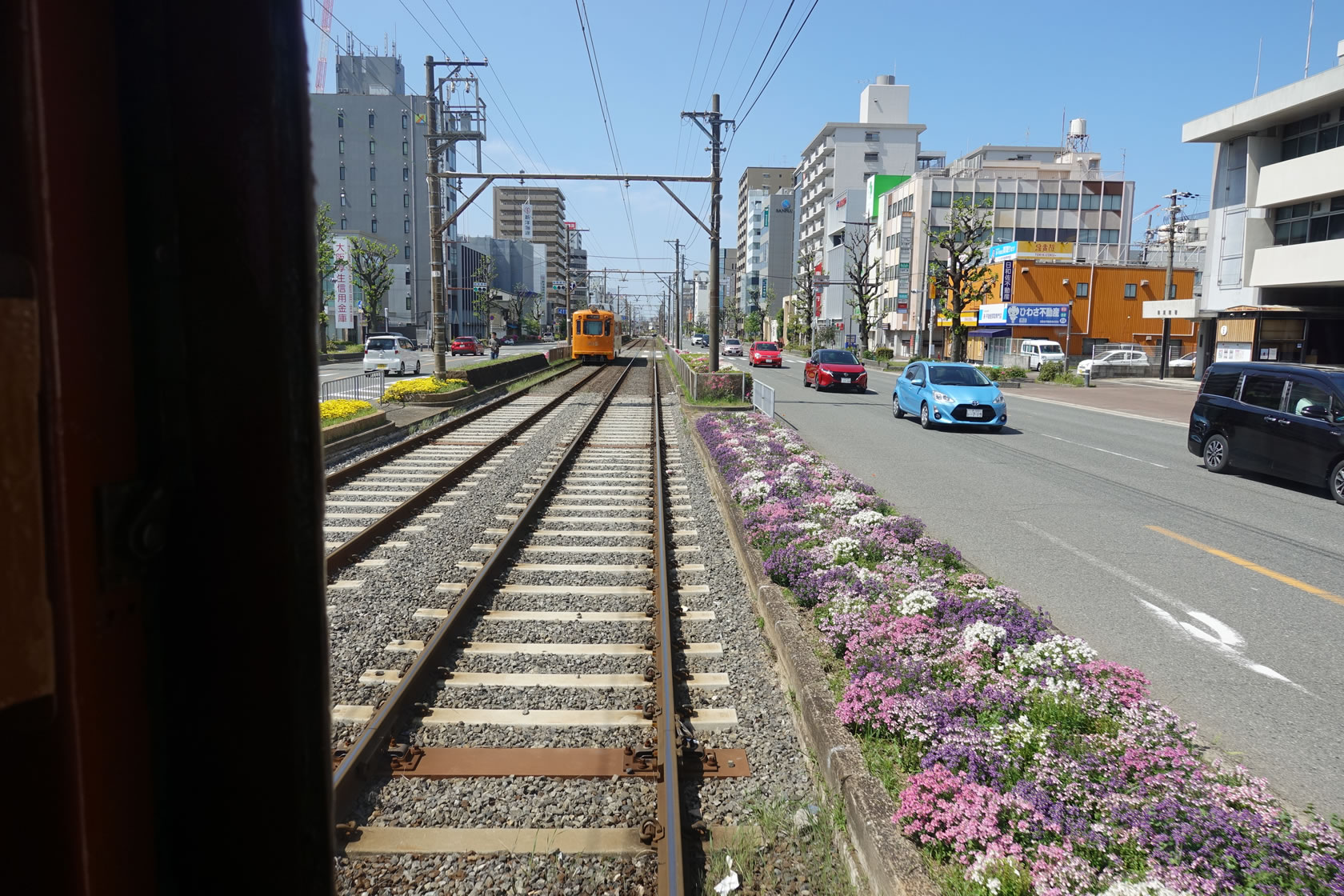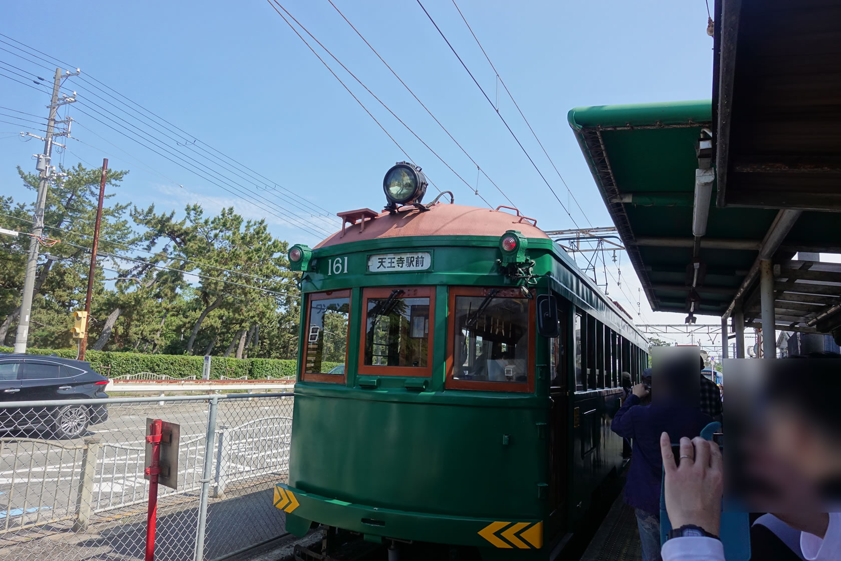 当然のことながら、電車は超満員。自分は座れなかったので最後部に行って景色を眺めることに。発車するとツリカケ音が響いていかにも旧型電車然とした走りになります。さすがに途中駅からの乗車は難しかったのですが、阪堺側もそれを承知のうえで続行便を運行していました。