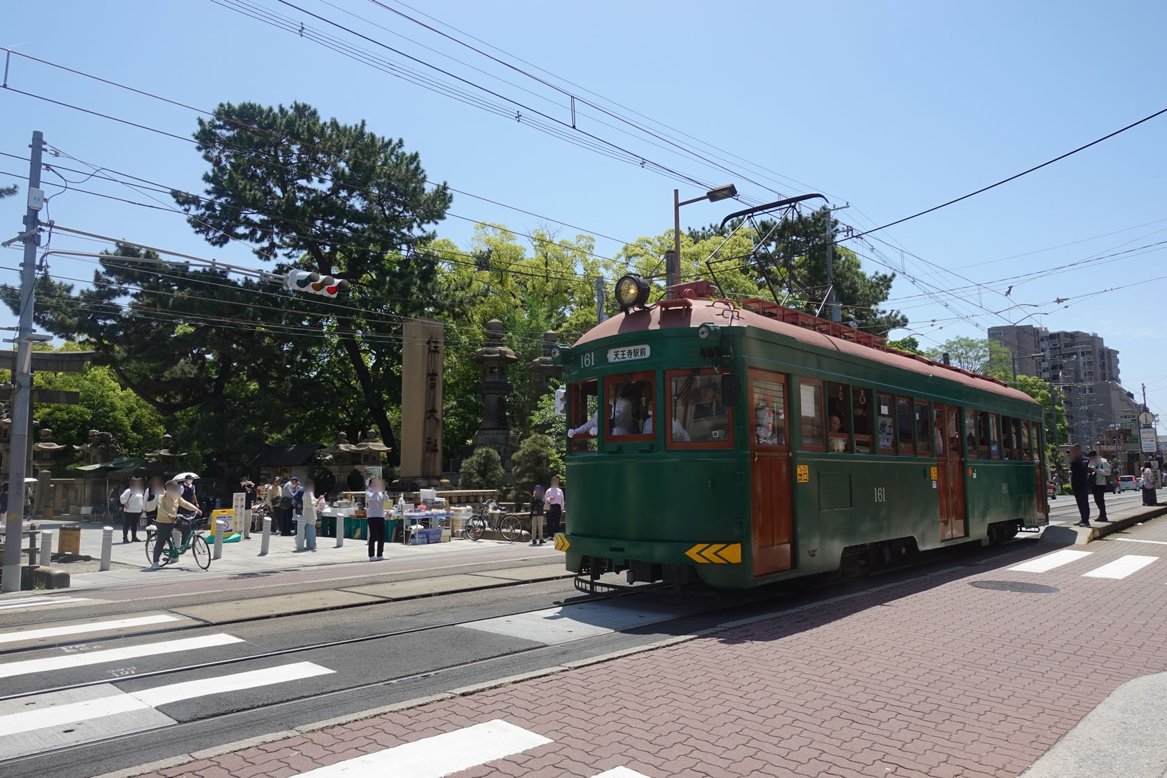 なんというか神社の前を走る旧式の路面電車ってなんか画になりますね。なぜなのでしょうか(笑)