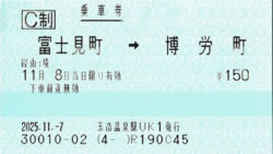 「富士見町->博労町」乗車券(後藤総合車両所一般公開)