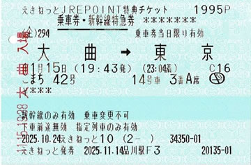 東京~大曲の場合、こまち往復36040円が4000ポイントですから約89%引き。1ポイントが約9円相当なのはかなり強力ですね。