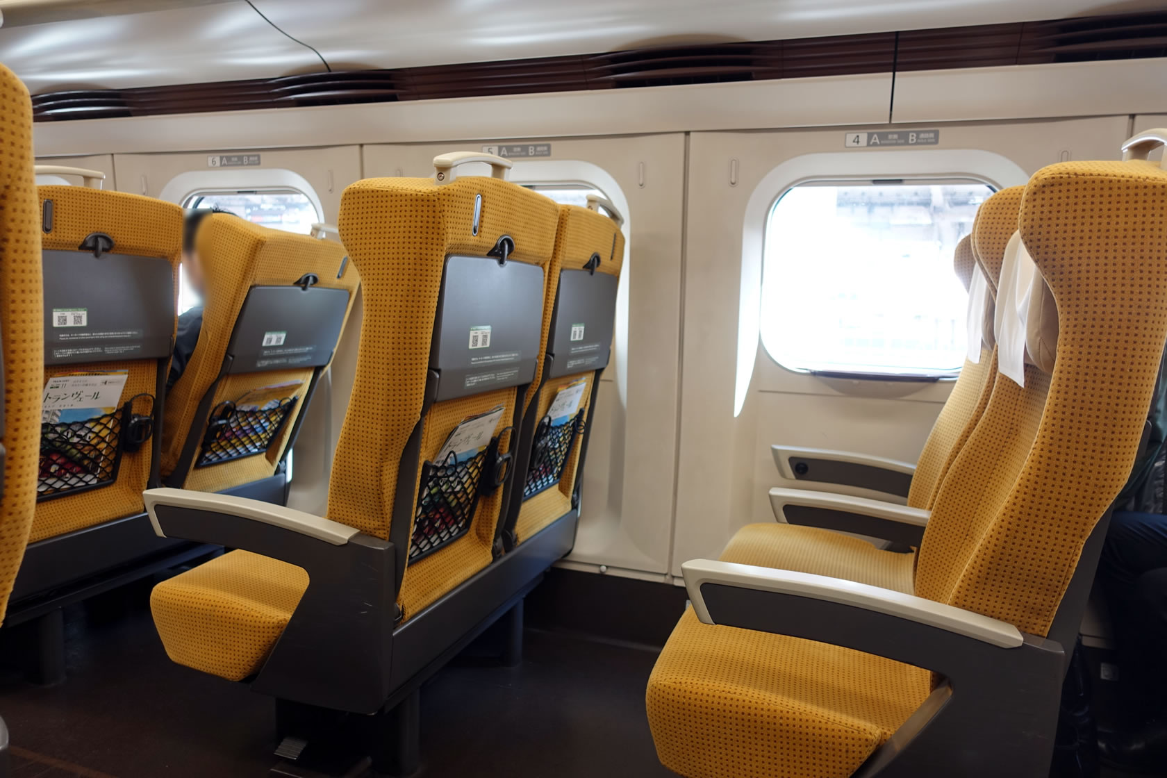 「こまち19号」はE6系。ミニ新幹線のため、2×2のシートが並びます。シートが黒ずんできているのは相当使い込まれた証。