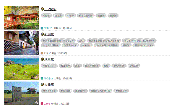 3度目の「どこかにビューーン」です。前回、前々回は新潟、仙台と割と無難なところがあたったのですが、3度目となるとどこか小さな駅がいいな・・・と思い、回してみると下記4駅が選択。