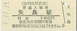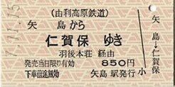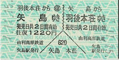 秋田県の羽後本荘から矢島までの旧国鉄矢島線の転換第三セクターの由利高原鉄道の乗車券です。