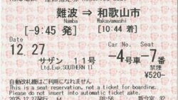 南海「サザン11号」座席指定券(創業140周年記念・復刻塗装)