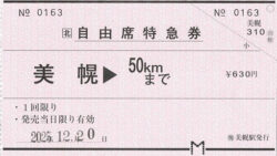 「美幌->50km」自由席特急券/「美幌->網走」乗車券・他