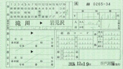 「滝川->岩見沢」自由席特急券/「芦別->札幌」乗車券