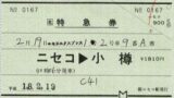 冬場のみ運転されるスキー臨時特急「ニセコスキーエクスプレス1号」の特急券です。特急券は通常マルス券(JR九州・四国ではPOSでも可能)の機械印字のものが主流ですが、このようにあらかじめ印刷している常備...