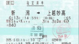 新潟地区の「のって楽しい列車」越乃shu*kuraで運行する「柳都Shu*Kura」の指定席券です。週末に運転され、えちごトキめき鉄道の上越妙高駅を出発し、信越線を長岡に向かい、そこからは運転日によっ...