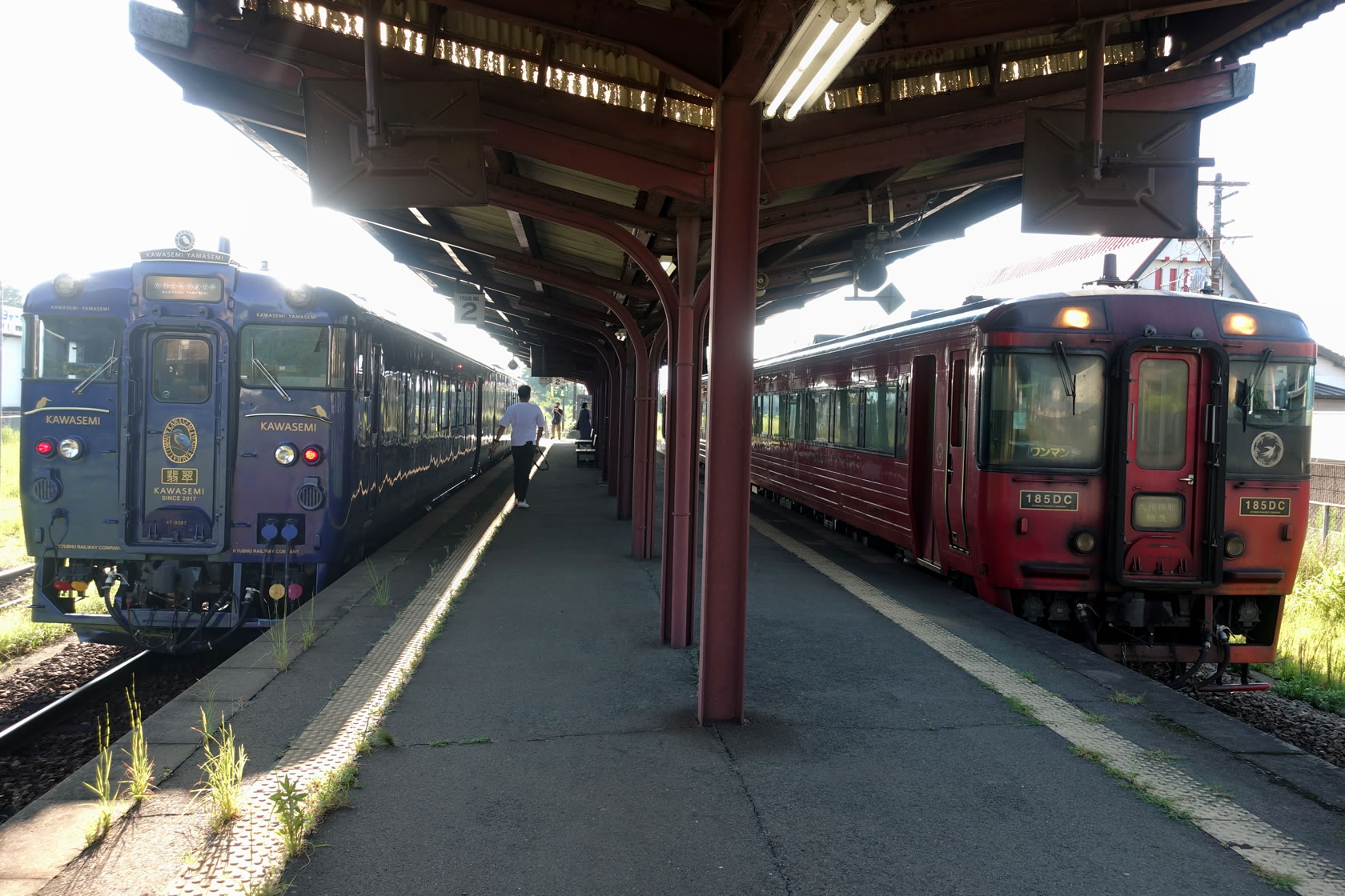 旺盛な湯布院需要を受けて特急「ゆふ」が5両編成に増結されましたが、今度は「ゆふいんの森」が検査等のためキハ185で代走すると、予備車がほとんどなくなってしまう事態になってしまいました。このため、過去に平日にキハ185の「九州横断特急」を運休して「あそぼーい!」を全車自由席特急で走らせるという奇策を繰り出したことがあります。