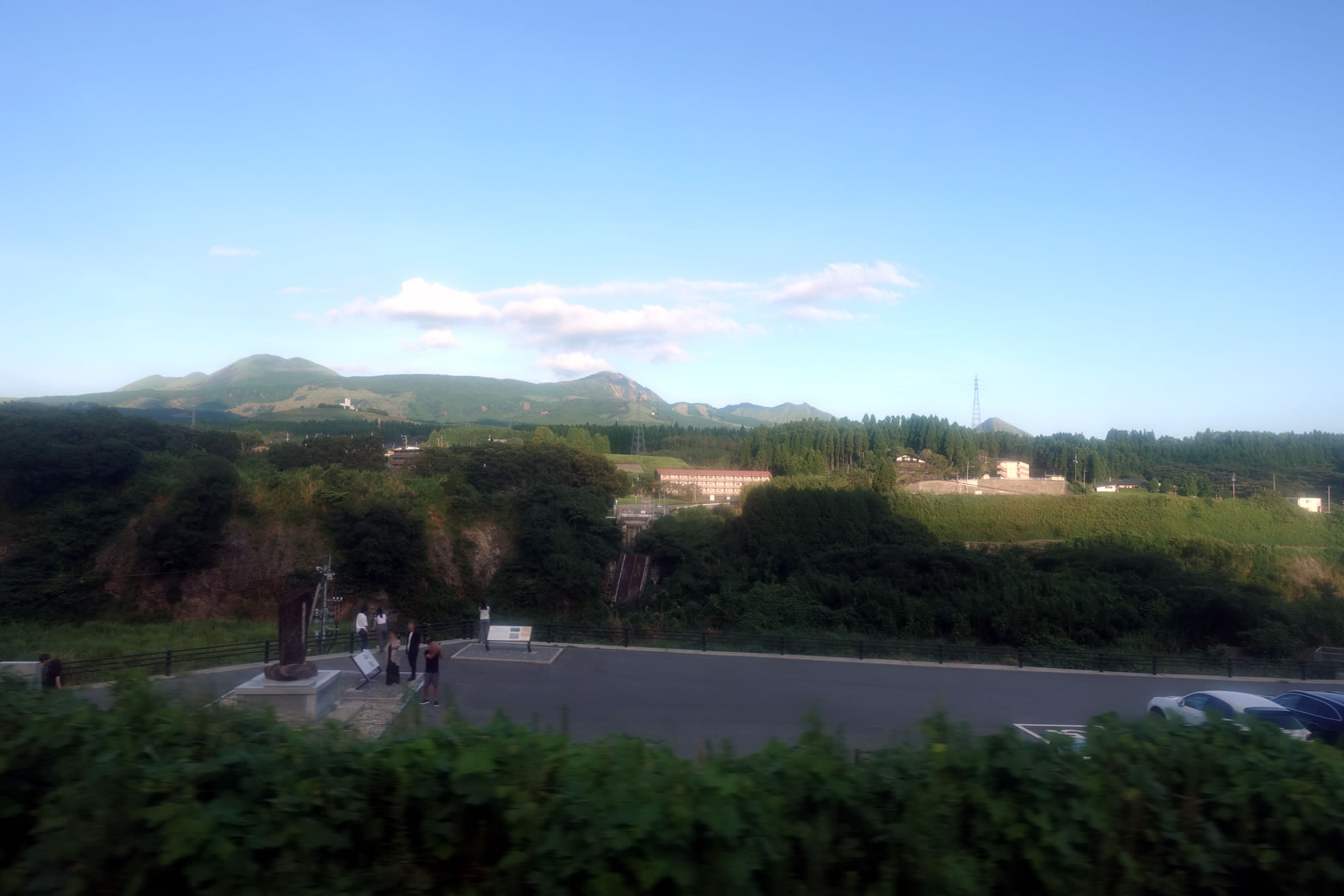 赤水を過ぎるとカルデラ内の盆地を過ぎ、立野火口瀬と呼ばれるカルデラの外輪山が途切れた部分を降りていきます。