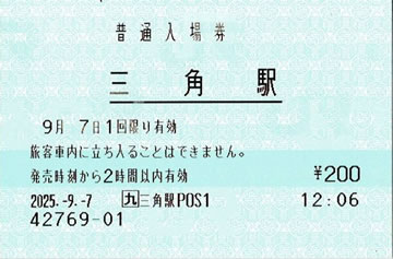 まずは手始めに入場券を購入。JR九州も無人化が進行してますが、三角駅は健在。