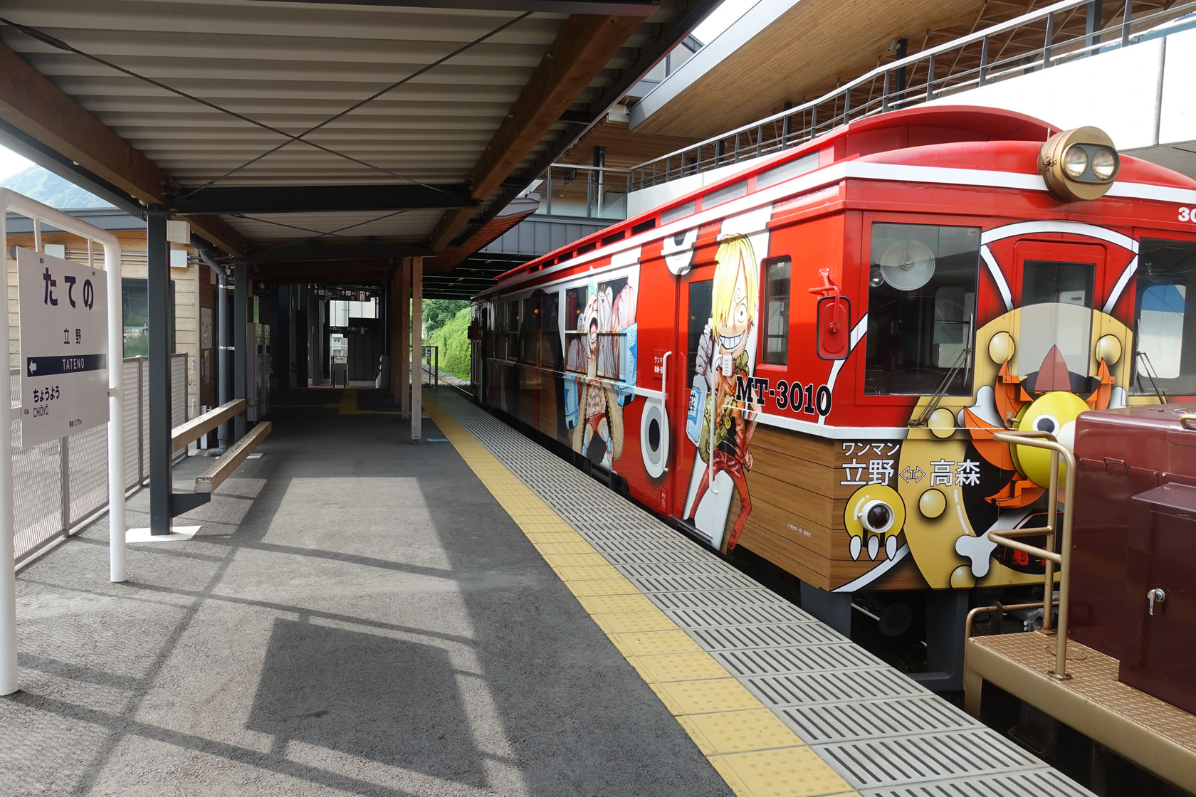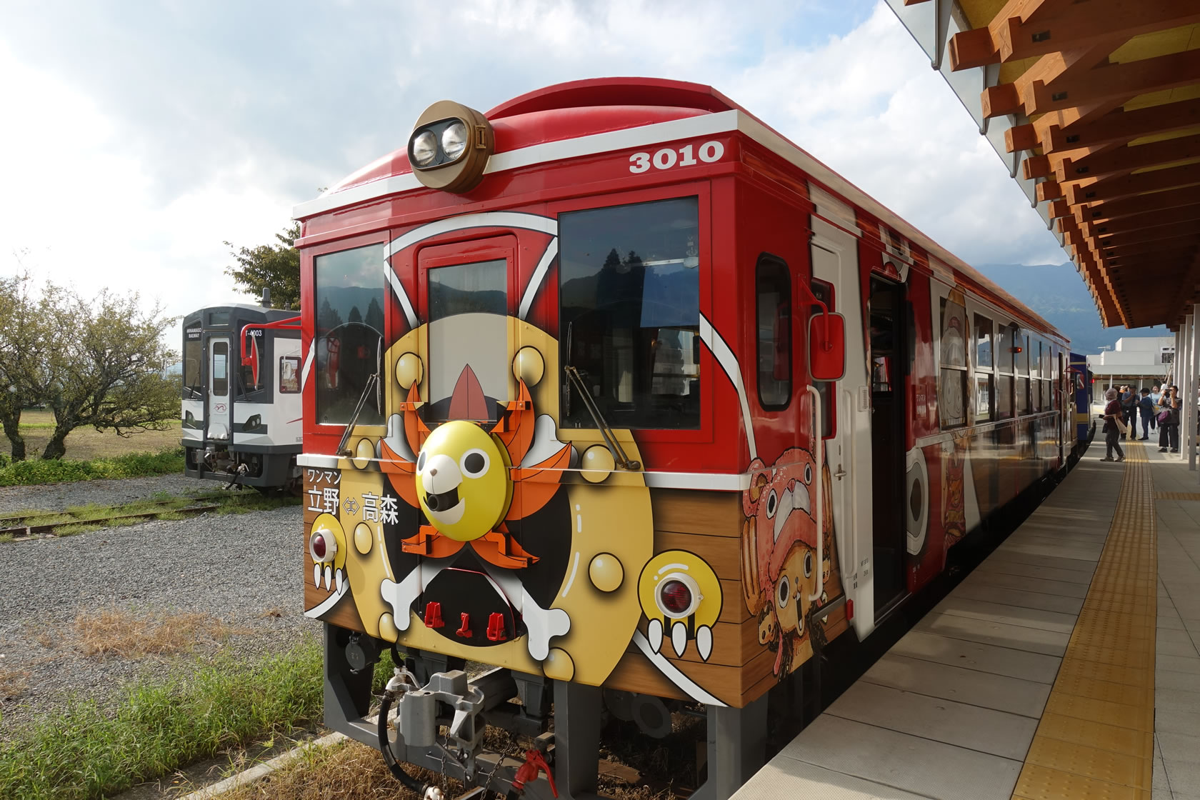熊本地震の復興を願い、熊本出身のONE PIECEの作者尾田栄一郎先生の協力のもと登場した列車で外観をド派手なラッピング車両。