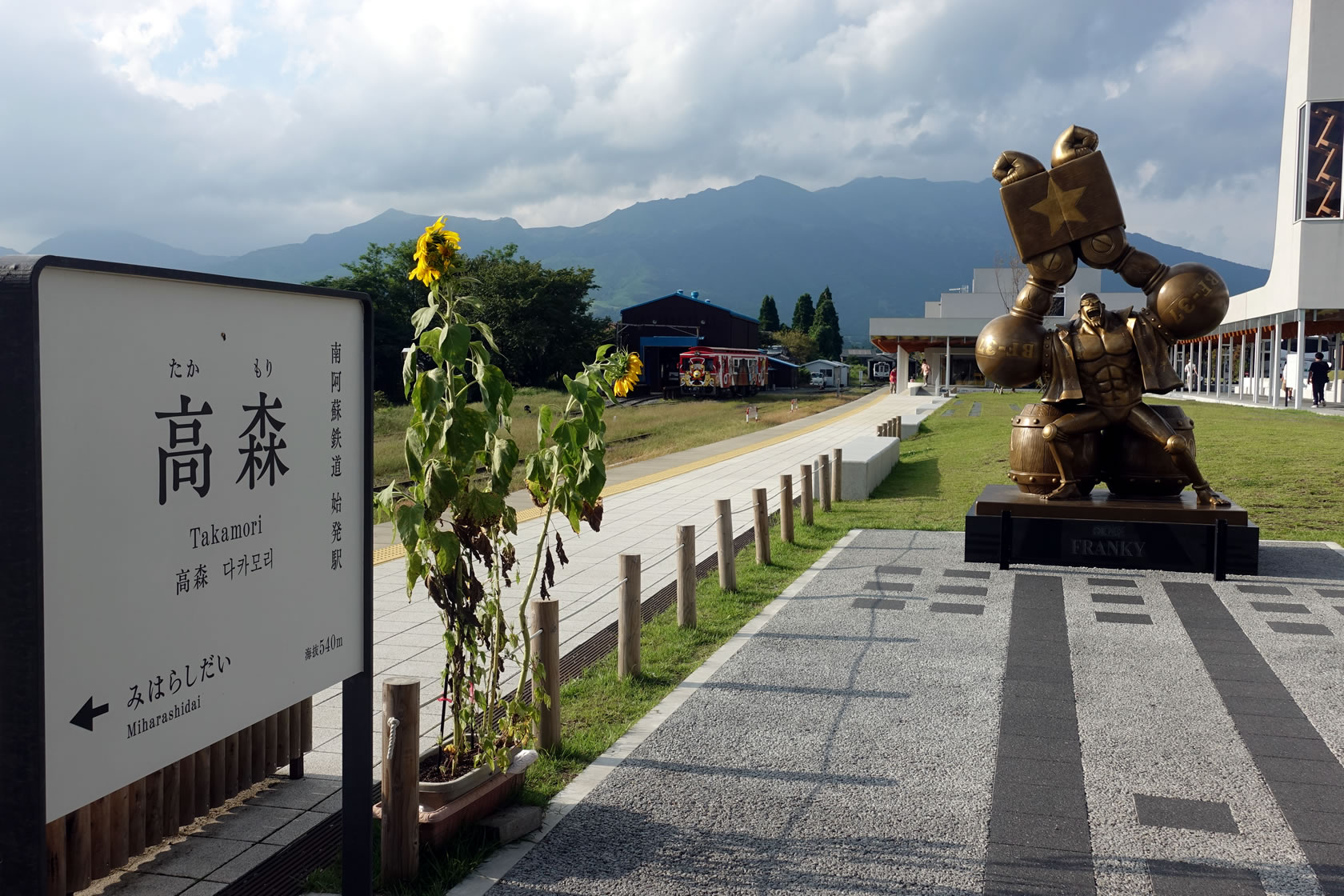 ゆっくりごとごと走ったトロッコ列車の旅も終点高森に到着。高森駅は観光案内所も併設した町の観光拠点となっており、わざわざ車でやってくる人も。というのも・・・
