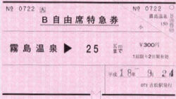 01 特急券 「霧島温泉→25km」自由席特急券
